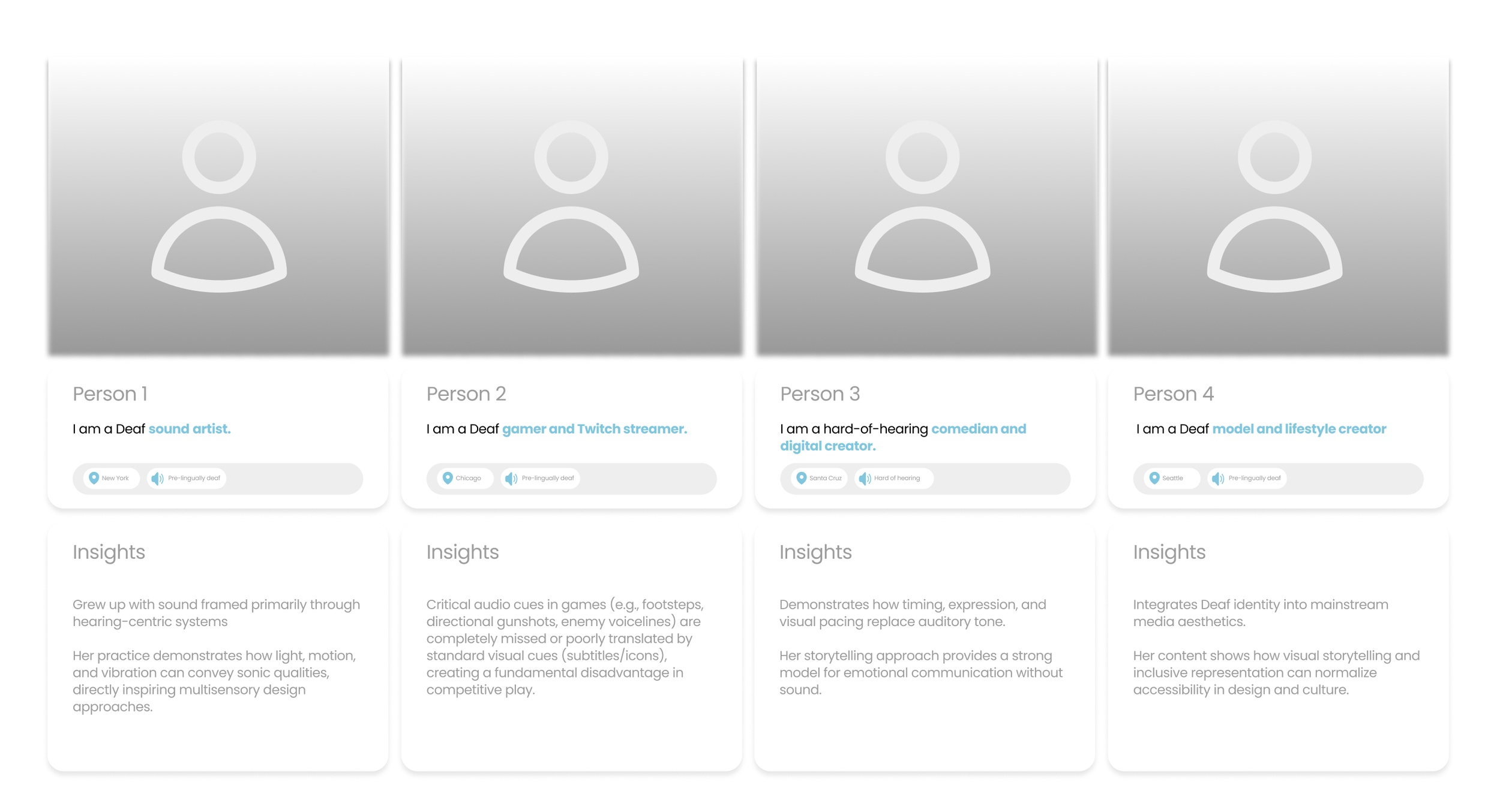 All four individuals navigate environments that are fundamentally designed around sound. Critical audio cues (like directional game sounds, tonal shifts, ambient atmosphere, or vocal nuance) are either inaccessible or poorly translated through subtitles and basic visual indicators. This creates missed information, reduced immersion, and, in some cases, competitive disadvantage.